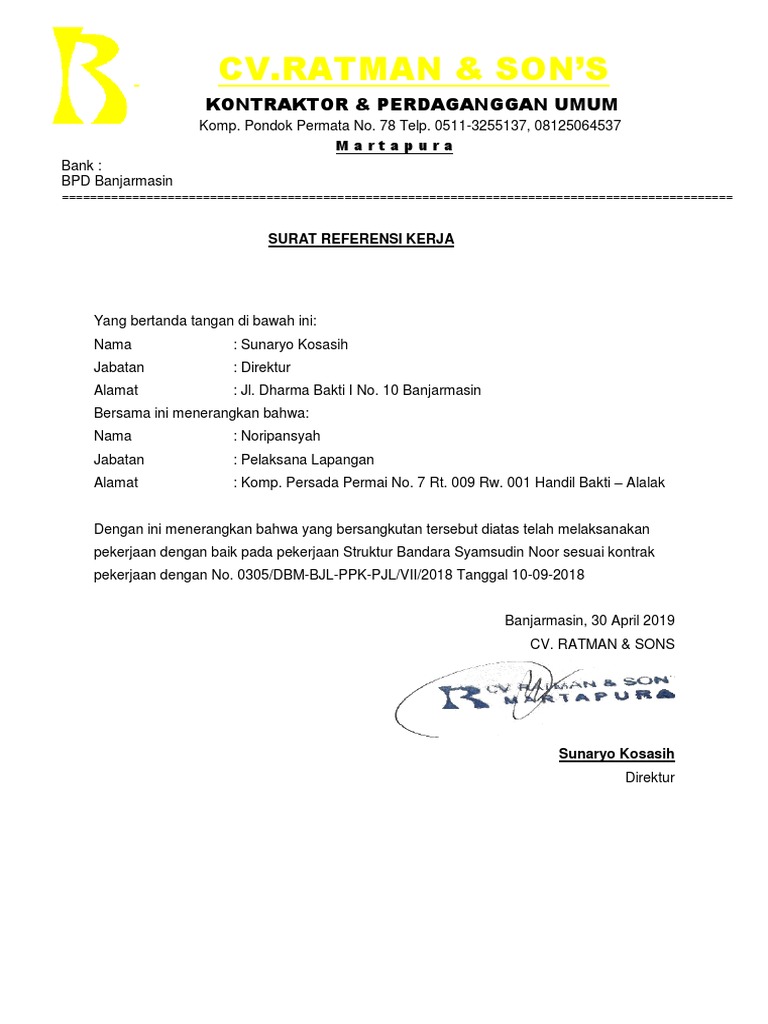 Contoh Surat Keterangan Kerja Kontraktor Chewyqwex